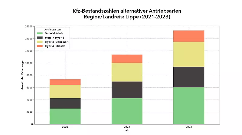 Obwohl in Lippe bei den Fahrzeugzulassungen auch ein Rückgang von Verbrennungsmotoren und eine Zunahme von alternativen Antrieben zu beobachten ist, liegt der Kreis sowohl unter den landesweiten, als auch den bundesweiten Zahlen. Das hat die Auto-Ratgeber-Seite CarWiki.de mit Zahlen des Kraftfahrtbundesamts ermittelt.