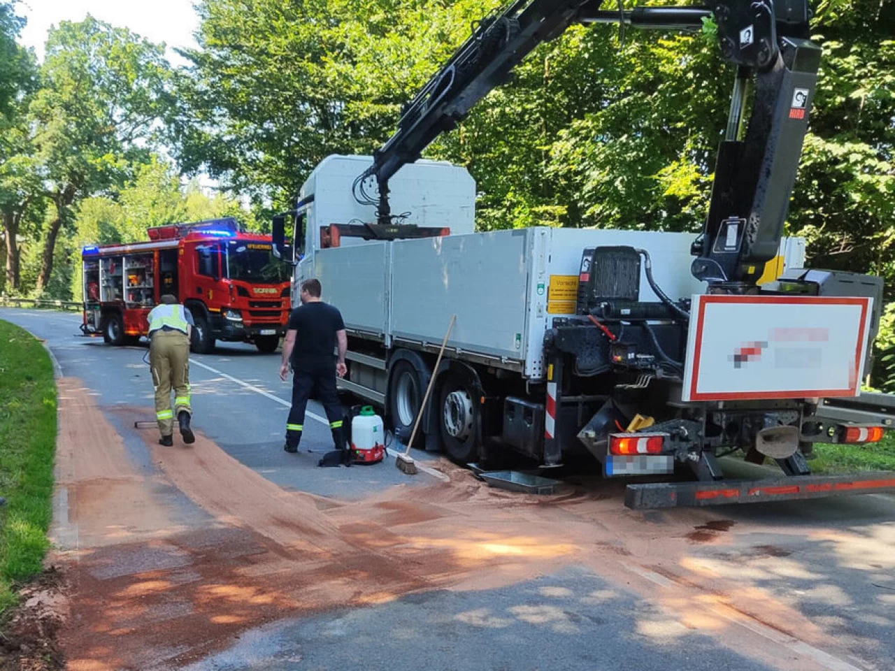 Bei dem Aufprall wurde der Ladekran so stark beschädigt, dass große Mengen Hydrauliköl auf die Barntruper Straße floß. Die Ölspur zog sich laut Bericht der Feuerwehr Dörentrup über mehrere hundert Meter. Weil die Mittel der Feuerwehr nicht ausreichten, um das Hydrauliköl zu entfernen, musste ein Spezialunternehmen für die Reinigung Straße hinzugezogen werden.