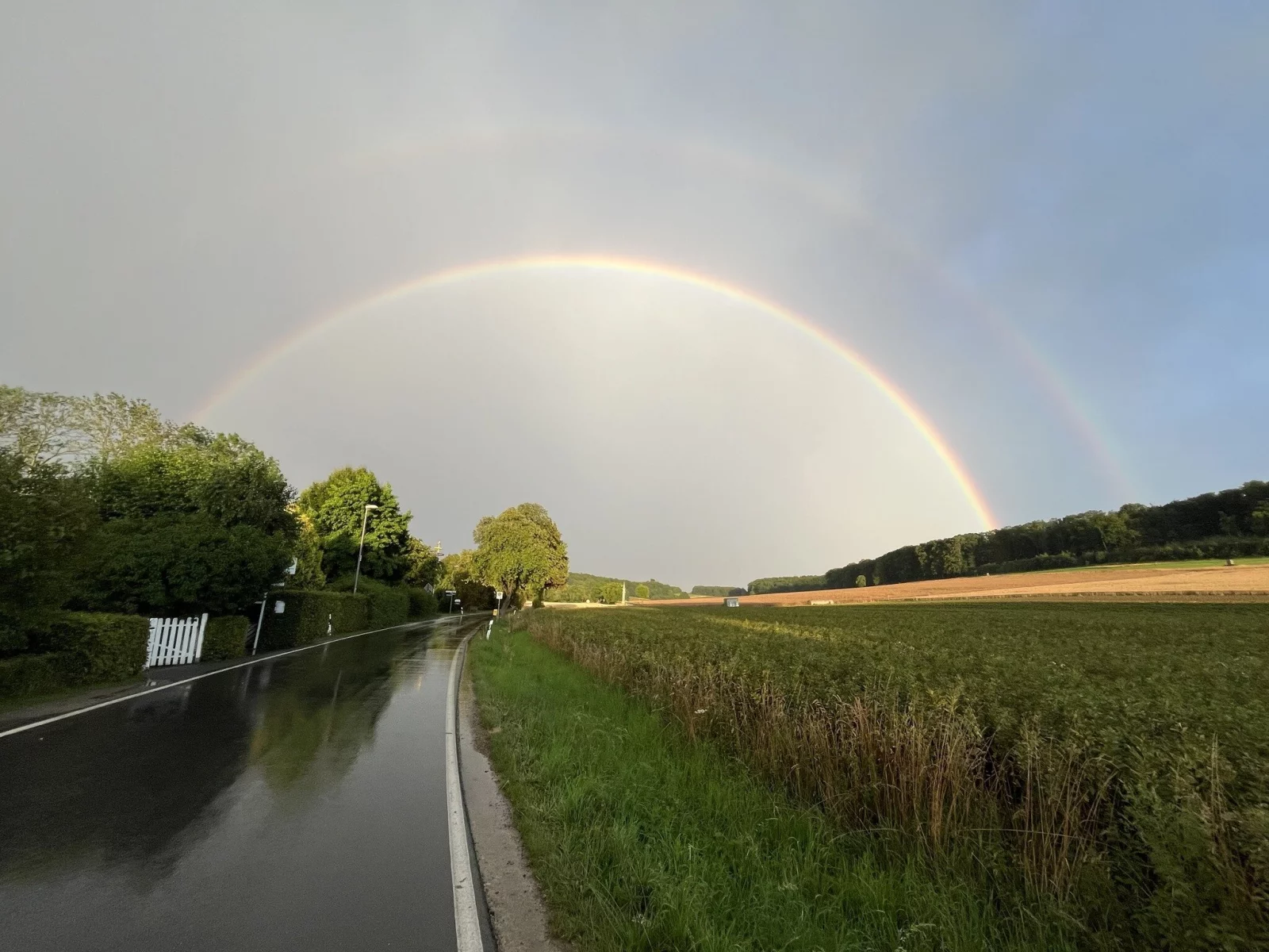 Und wussten Sie, dass man manchmal sogar einen zweiten Regenbogen sehen kann? Dieser sogenannte Nebenregenbogen ist blasser und die Farben sind in umgekehrter Reihenfolge – Violett außen und Rot innen. Er entsteht durch eine doppelte Reflexion des Lichts im Regentropfen. So wie am Wochenende über Lippe.