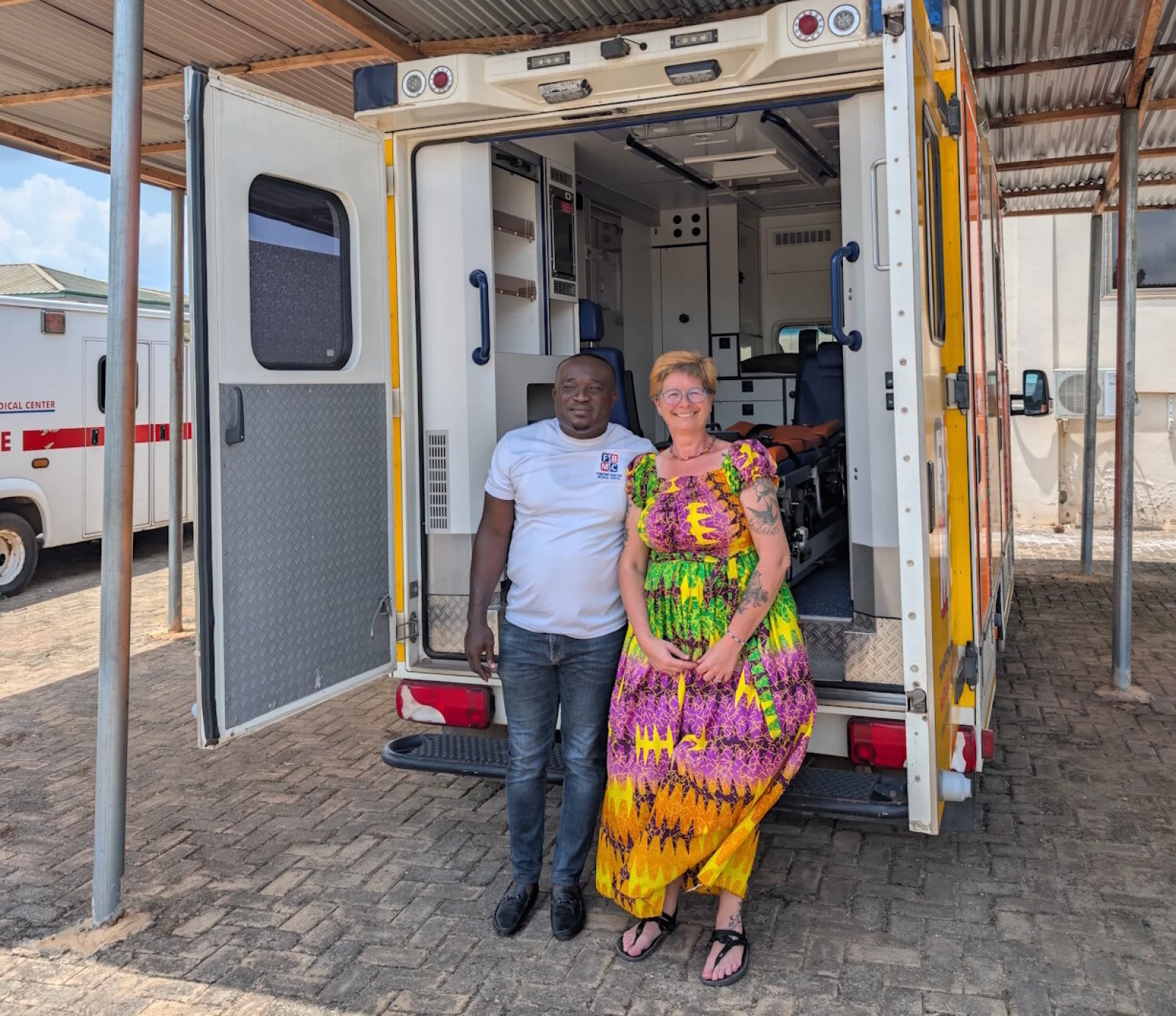 Im Rahmen ihrer berufsbegleitenden akademischen Ausbildung zur Physician Assistant absolvierte Saueressig ein Praktikum am Frimpong-Boateng-Medical Center in Toase, einer Stadt mit rund 40.000 Einwohnern im Südwesten Ghanas. Die medizinische Versorgung dort ist einfach, dennoch steht ein voll ausgestatteter Rettungswagen bereit – und der trägt auf der Hintertür noch gut lesbar den Schriftzug „Rettungsdienst Kreis Lippe“.