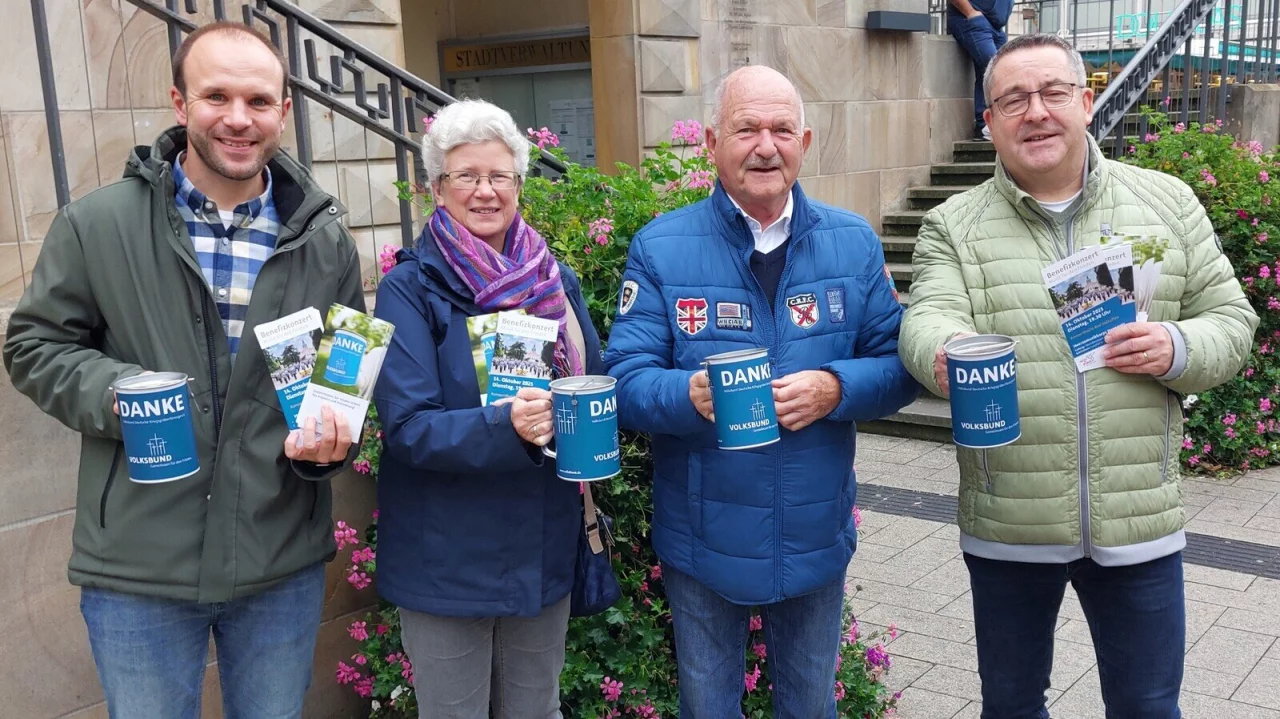 Gemeinsam mit Elke Wittek, dritte stellvertretende Bürgermeisterin der Stadt Detmold, Heinz Holey, Oberst der Detmolder Schützengesellschaft, und Sebastian Schulz, Geschäftsführer des Kreisverbands Lippe, zog Dr. Lehmann mit einer Sammelbüchse in der Hand über den Detmolder Marktplatz und durch die Einkaufsstraßen, um ein deutliches Zeichen für Solidarität, Erinnerungskultur und das fortdauernde Gedenken an die Opfer von Krieg und Gewalt zu setzen und um Spenden zu bitten.