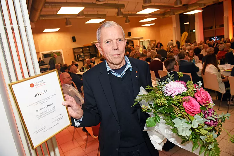Der Heimatbund ehrte Dr. Hüser mit der Goldenen Rose sowie der Ehrenmitgliedschaft für herausragende Verdienste. „Insbesondere zeichnet er verantwortlich für das wegweisende Projekt ,Gesichter der Weserrenaissance’, die Gründung der Stiftung Lippischer Heimatbund und den Aufbau des Verbandes zu einer zukunftsorientierten Organisation“, heißt es. Dr. Hüser habe für den LHB viele Werte mitentwickelt - etwa einen starken Nachhaltigkeitsgedanken, Transparenz und bürgernahes Engagement, die den Verband auch zukünftig prägen werden.