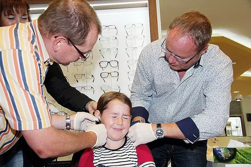 Hannah hat sich die Ohrringe schon ausgesucht. Pink sollen sie sein, mit einem kleinen funkelnden Stein. "Das passt ja zu Deiner Jacke", sagt Mutter Maren Brettmeier. Die Fünfjährige strahlt. Doch ihre Aufregung kann sie kaum verbergen. "Ich hab ihr schon gesagt, dass es auch ein bisschen wehtut", betont Maren Brettmeier. Das hat Hannah von ihrem Entschluss nicht abgehalten: Ja, sie will Ohrringe, nickt sie dem Juwelier Bernd Pastern zu.
