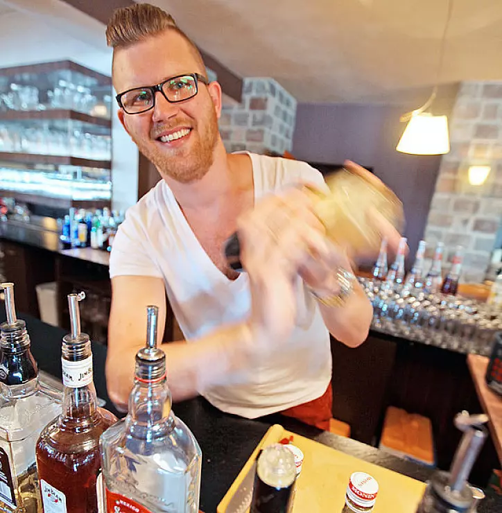 In Detmold mixt Sebastian Schraets, der Betriebsleiter des Villagio, die Cocktails gern selbst. Der gelernte Wirtschaftswissenschaftler und Logistiker nahm seine Passion mit in den Beruf. "Ich habe viele Veranstaltungen organisiert, arbeitete in der Zweiraumbar – heute Kottmanns Cocktail-Bar – und jetzt hier." Den Sommer über gehen hier eher die Getränke mit dem minderen Alkoholgehalt – fruchtig ist angesagt, wie etwa der Son-Vida-Dream. Er besteht aus Likör 43, Vodka, Passoa – einem alkoholhaltigem Sirup – Limonen- und Maracujasaft.