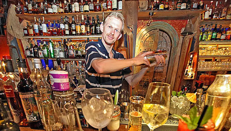 Sein Tipp: Die Gläser für die Drinks mit Eis vorkühlen, damit das Eis im Getränk nicht so schnell schmilzt und den Geschmack verwässert. Die Deko am Glasrand fällt unterschiedlich aus: "Die meisten Gäste finden sie toll und essen das Obst – für viele ist ein Cocktail auch Unterhaltung, sie stehen gern an der Cocktailbar und schauen einfach zu, wenn ich mixe."