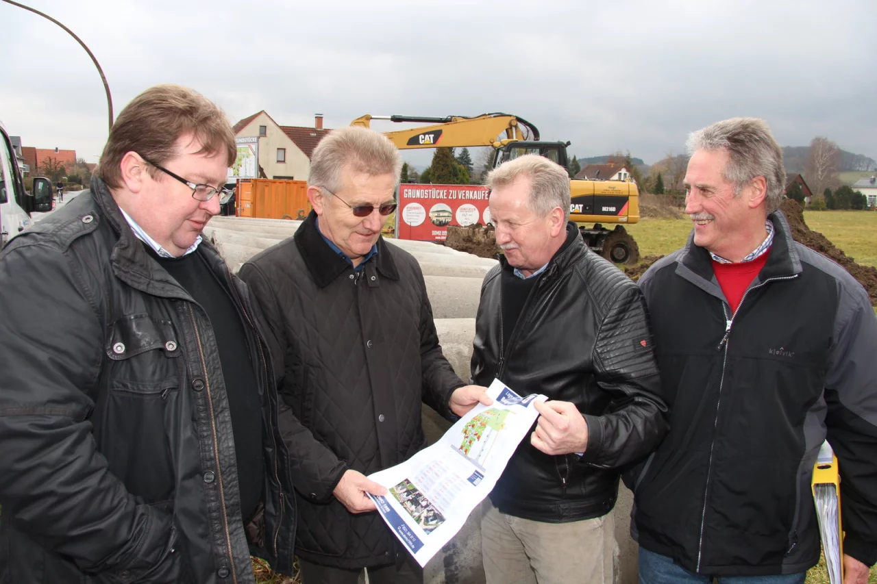 Pünktlich um 11 Uhr rollte der erste Bagger an, um Erdreich zur Verlegung der Kanalleitungen auszuheben. Die Chefs des Bauträgers, die Firma „Domo 1999 Immobilien GmbH“, Viktor Isaak, Waldemar Zacher und Victor Heidebrecht, freuten sich genauso wie Reinhard Plöger aus dem Ort über den maschinellen ersten Spatenstich. Reinhard Plöger, früher sachkundiger Bürger der SPD-Ratsfraktion, habe sich eigenen Worten nach in den parlamentarischen Gremien für die Schaffung der neuen Siedlung eingesetzt.Für die Bebauung stehen insgesamt 11.000 Quadratmeter zur Verfügung stehen.