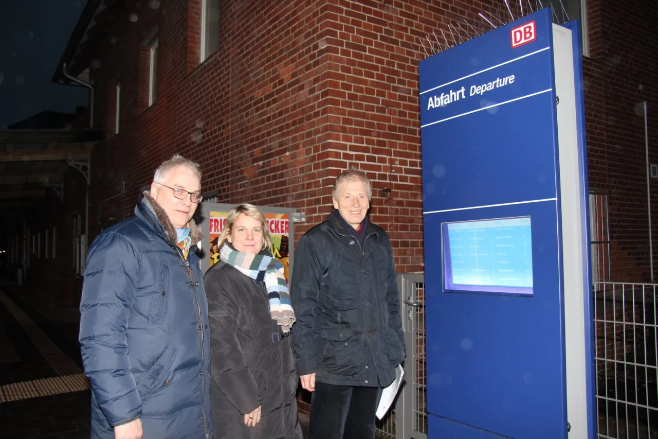 Bei einem Rundgang durch den Lagenser Bahnhof bemängelte Ulrich Reuter, dass die dynamischen Schriftanzeiger bei Verspätungen und Betriebsstörungen nicht ausreichten. Besser seien große Fahrzielanzeiger und individuelle Lautsprecherdurchsagen.