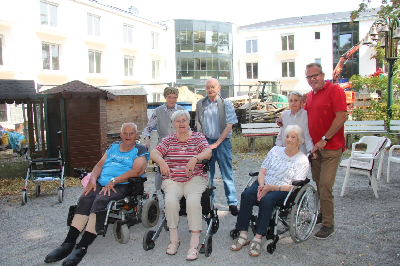 Lage. Günter Lenz Lieblingsort ist im verbliebenen kleinen Garten des Karolinenheims. Von einem schattigen Plätzchen aus kann der 82-Jährige am besten jeden Tag das Wachsen des gegenüberliegenden Neubaus verfolgen. „Die Handwerker sind fix, jetzt beginnt schon der Innenausbau", sagt der sportliche Senior und ehemalige Fußball-Schiedsrichter, der nun auf einen Rollstuhl angewiesen ist.