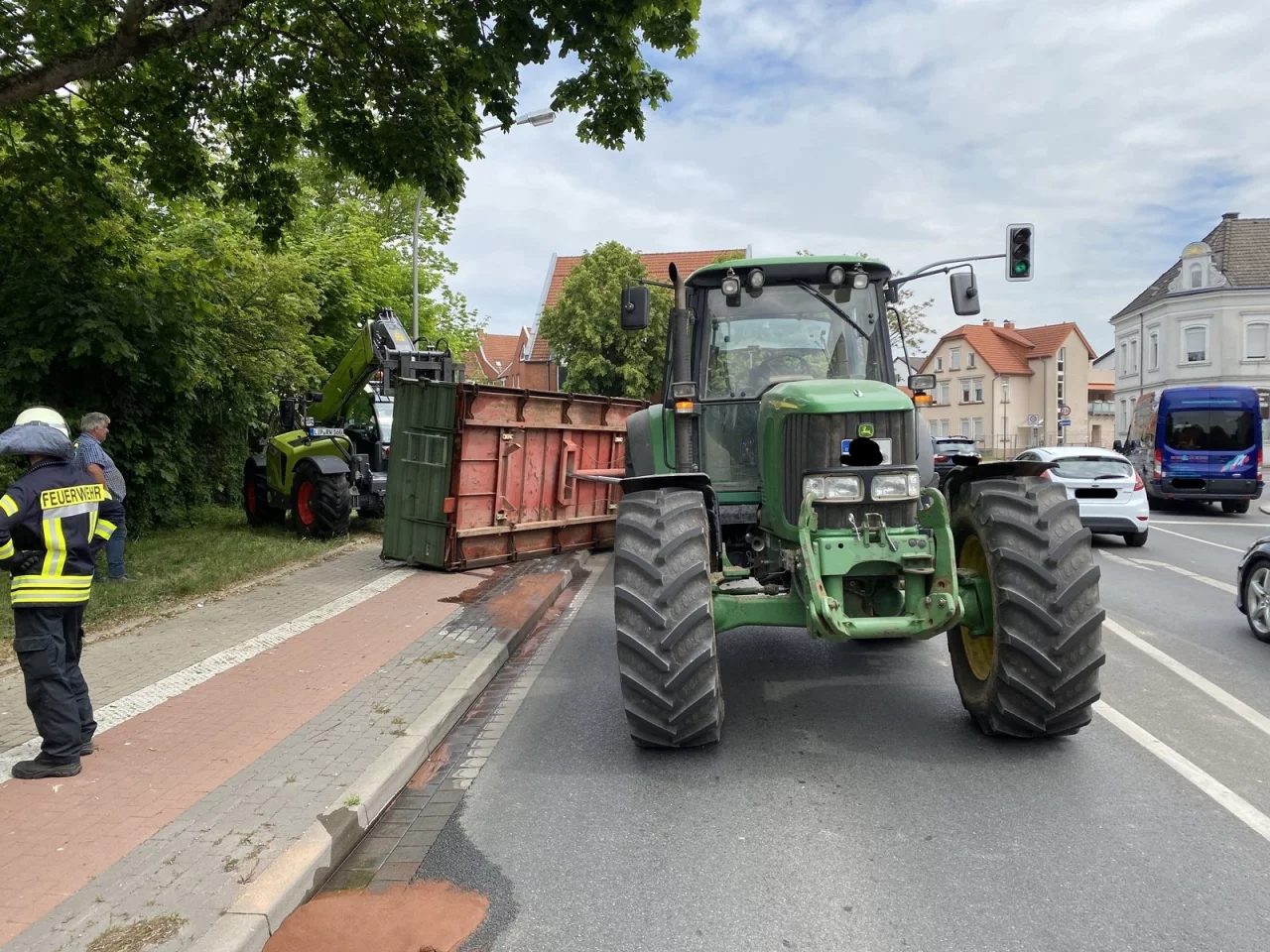 Lage. Wegen eines umgekippten Traktoranhängers, auf dem tausende Liter Flüssigdünger gelagert waren, musste die Friedrich-Petri-Straße am Dienstag für zweieinhalb Stunden voll gesperrt werden. Etwa 200 Liter Düngemittel flossen laut Polizei auf die Straße, teils auch in die Kanalisation. Die Feuerwehr wurde gegen 11.40 Uhr alamiert.