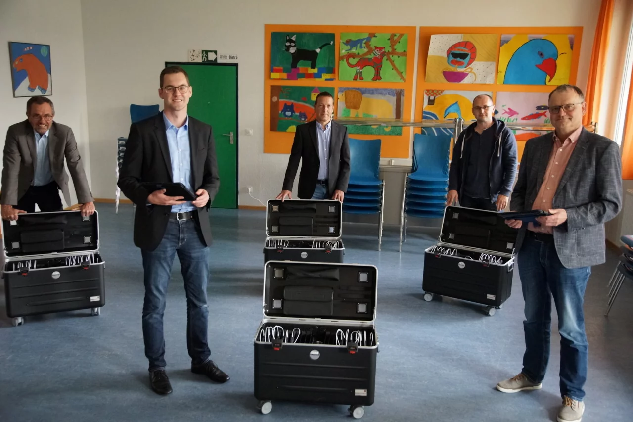 Das Lehrerkollegium der Schule wurde laut Pressemitteilung Ende vergangenen Jahres schon komplett mit Dienst-Tablets ausgestattet und inzwischen entsprechend geschult, so dass ein Zugriff auf das Schulnetz und der Einsatz von Schulsoftware sowie Lern-Apps im Schulalltag möglich sind.