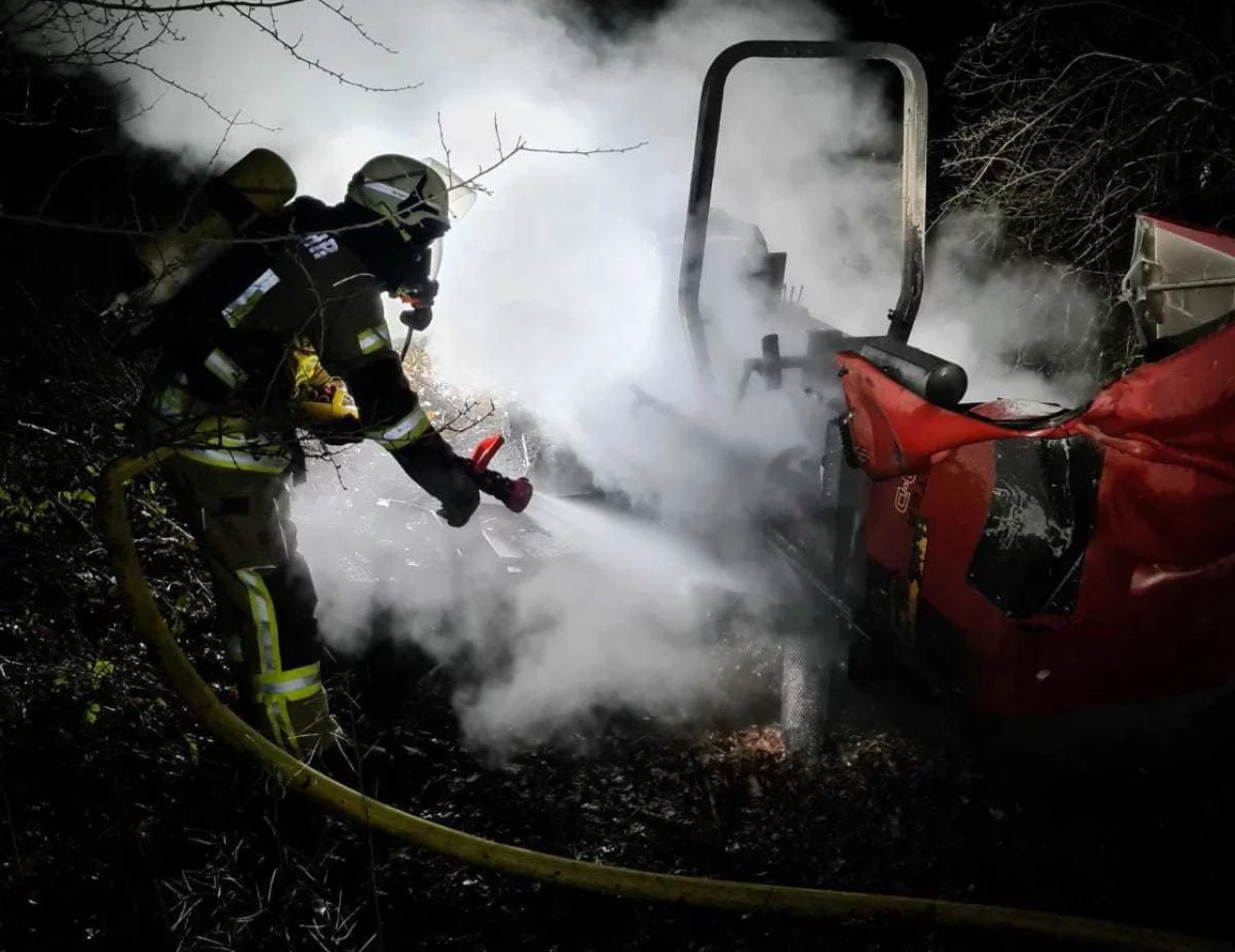 Der Mäher wurde gelöscht und mit einer Wärmebildkamera kontrolliert. Der Einsatz dauerte etwa drei Stunden.