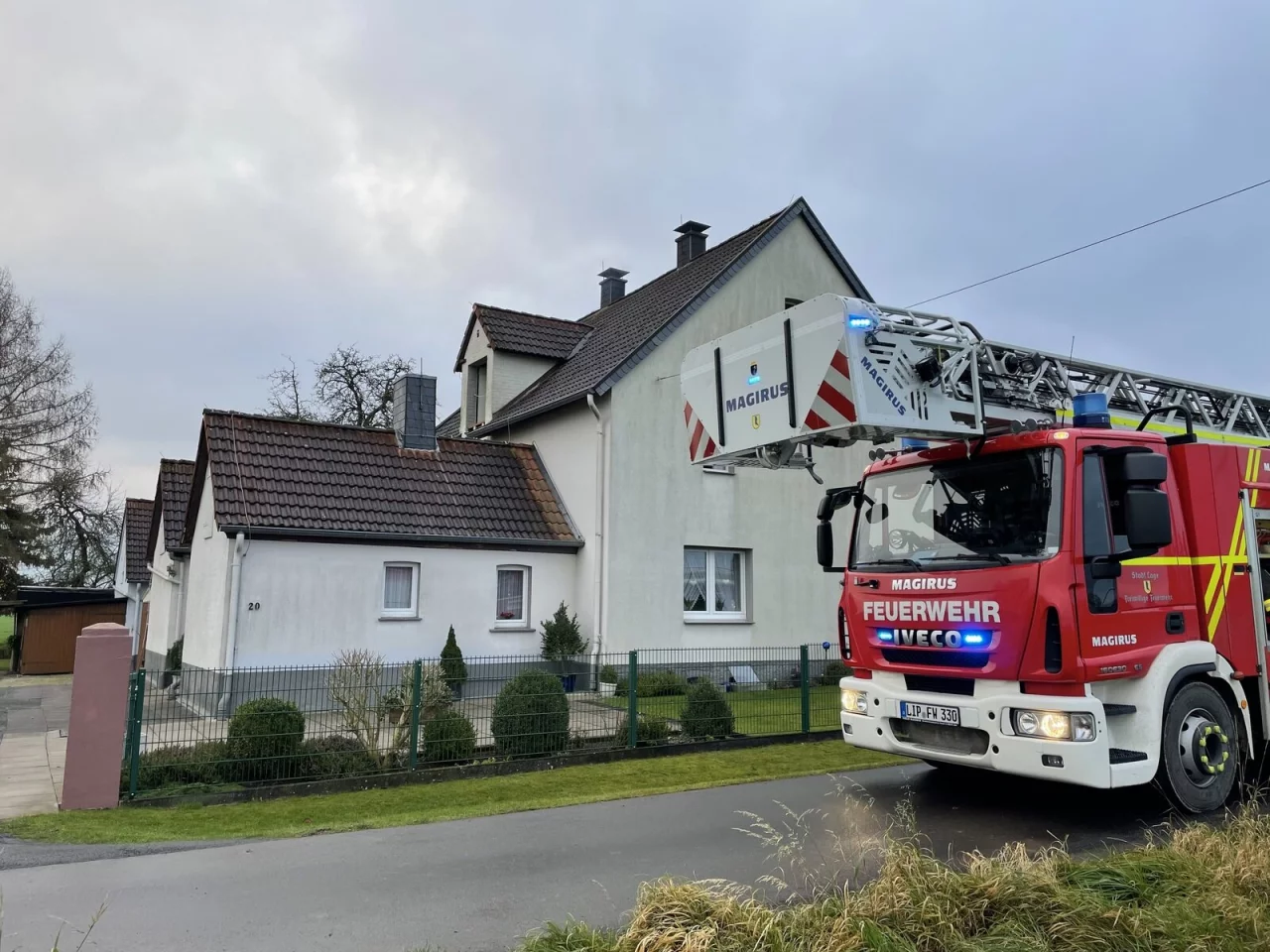 Bei Eintreffen der ersten Einsatzkräfte wurde festgestellt, dass sich an einem Wohnhaus der im Kamin angehaftete und abgelagerte Ruß entzündet hatte. Hierdurch kam es am Kamin zu Funkenbildung und einer starken