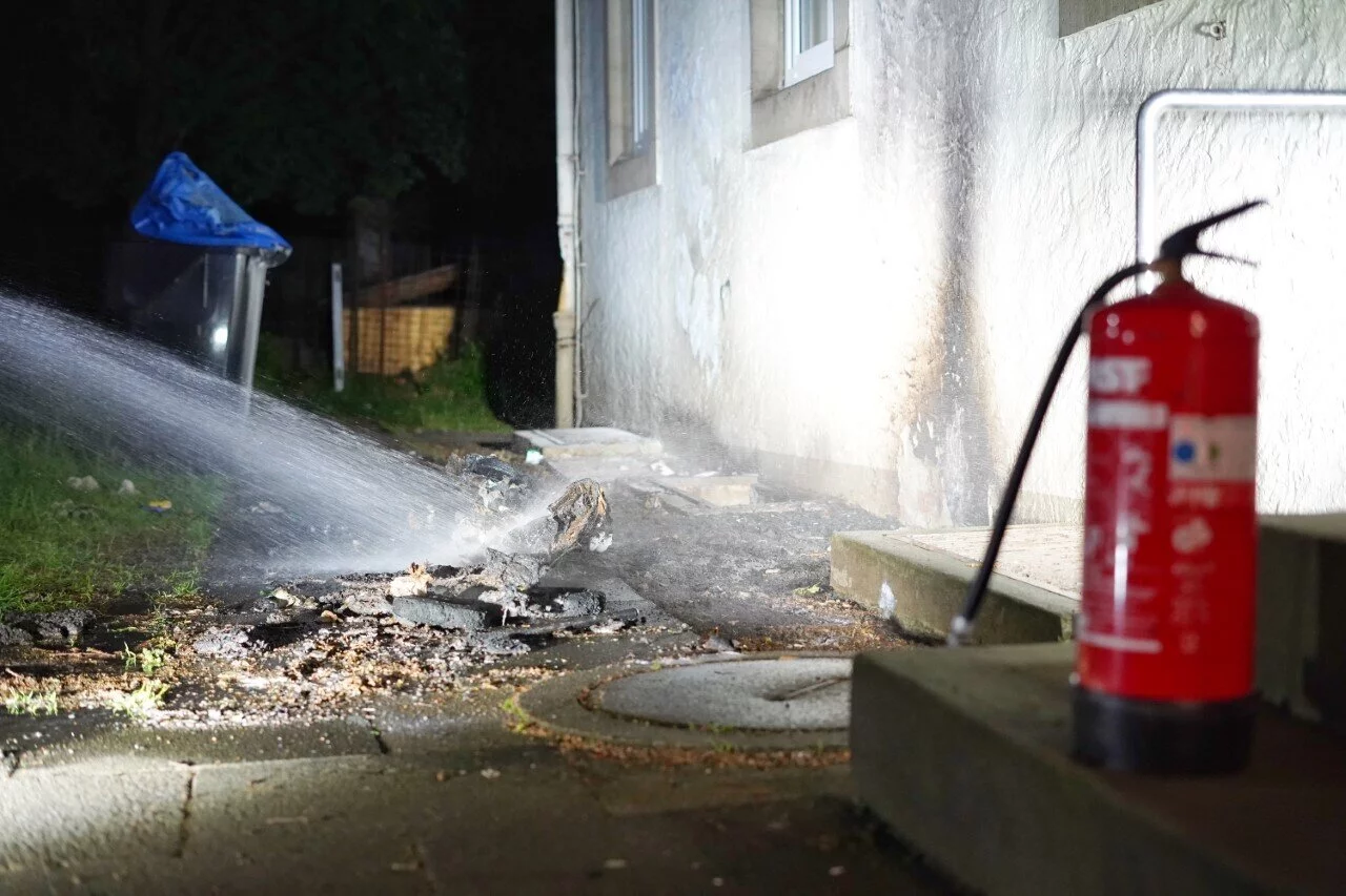 Die zuerst eintreffenden Einsatzkräfte der Polizei löschten den Brand mit einem Feuerlöscher sofort soweit ab, dass nur noch Glutnester vorhanden waren. Damit konnte ein größerer Schaden abgewendet werden und die kurz darauf eintreffende Feuerwehr schnell Entwarnung für die nachrückenden Kräfte geben.