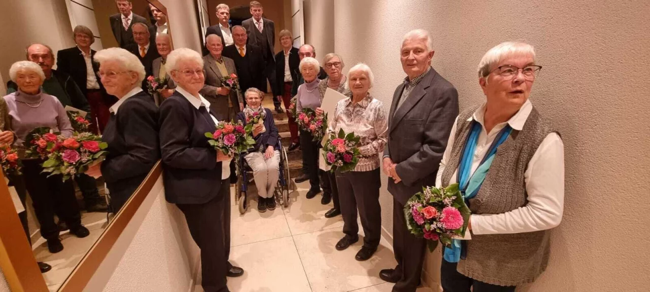 Nach dem Kaffeetrinken wurden einige Mitglieder geehrt, sie erhielten eine Urkunde, Blumen und Saft. Einige der zu Ehrenden waren verhindert, der Vorstand werde die Ehrung bei den Betreffenden zu Hause nachholen.