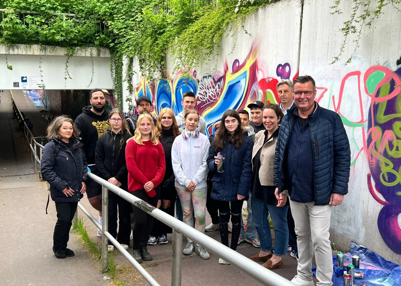 „Bevor es aber in der Unterführung losgehen konnte, mussten die Jugendlichen erst einmal lernen, wie man eine Sprühdose richtig bedient und mit welchen Techniken Bilder an den Wänden entstehen. Neben etwas Theorie wurden dazu Holzplatten genutzt, auf denen die jungen Künstlerinnen und Künstler zur Übung eigene Motive aufbringen konnten“, schreibt die Gesellschaft Lippe Bildung in einer Pressemitteilung.