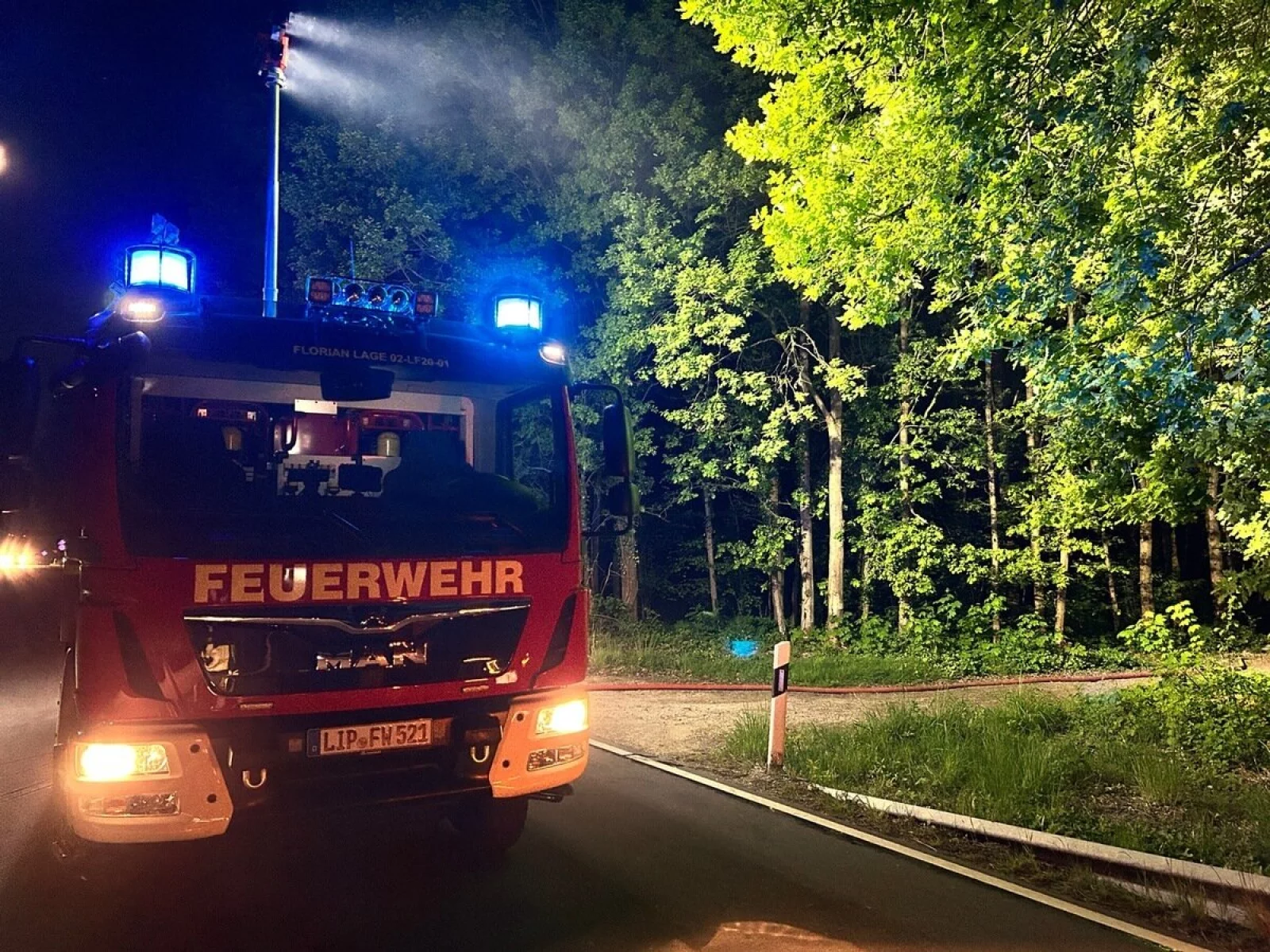 Lage. Die Feuerwehr in Lage ist am Samstagabend um 22.10 Uhr in ein Waldstück an der Heßloher Straße gerufen worden. Aufmerksame Jäger, die sich in der Nähe aufhielten, hatten den Brand entdeckt und gemeldet.