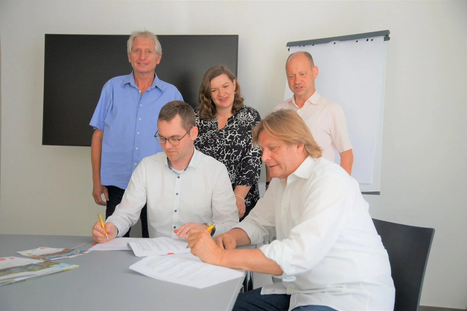Bei der Vertragsunterzeichnung mit dabei waren Hans Hofste, Vorsitzender des Ausschusses für Wirtschaft und Stadtentwicklung, Detlef Hübner, Vorsitzender des Ausschusses für Kultur, Tourismus und Ehrenamt sowie Julia Hinkelmann Fachgruppenleiterin Stadtmarketing und Wirtschaftsförderung. Die neue Regelung gilt auf unbestimmte Zeit und kann jeweils zum 30. Juni gekündigt werden. Sie beinhaltet einen aktualisierten Leistungskatalog und berücksichtigt die tariflichen Entwicklungen im Personalbereich.