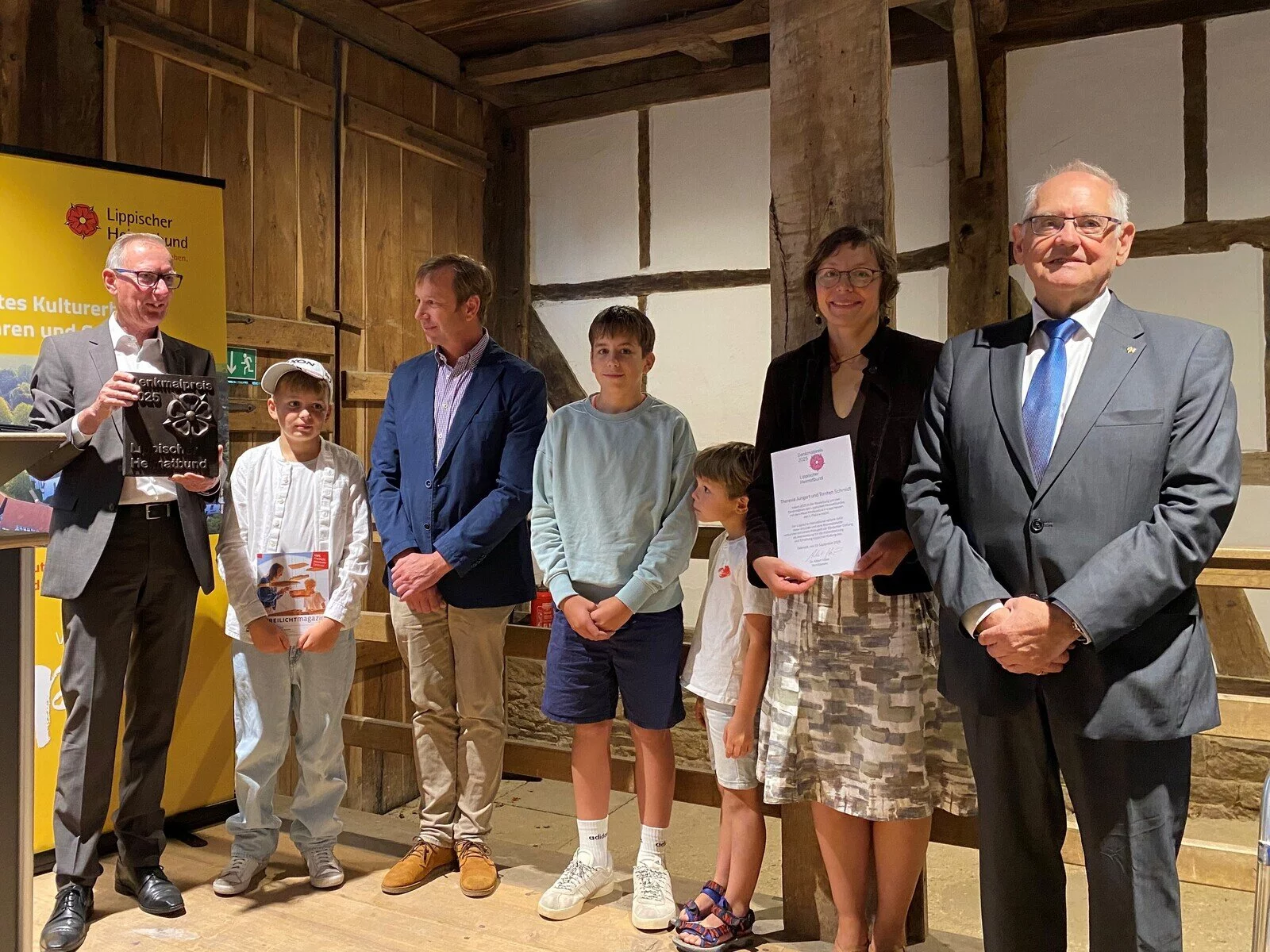 Bei der Preisverleihung im LWL-Freilichtmuseum erhielten nach Angaben des Heimatbundes Eva und Dietmar Filter mit dem Kavalierhaus der Villa Leopold in Bad Meinberg den 3. Preis. Den 2. Preis errangen Michelle und Nick Pyka für Ihr Fachwerkhaus im Norden Detmolds, an der Grenze zu Wahmbeckerheide.