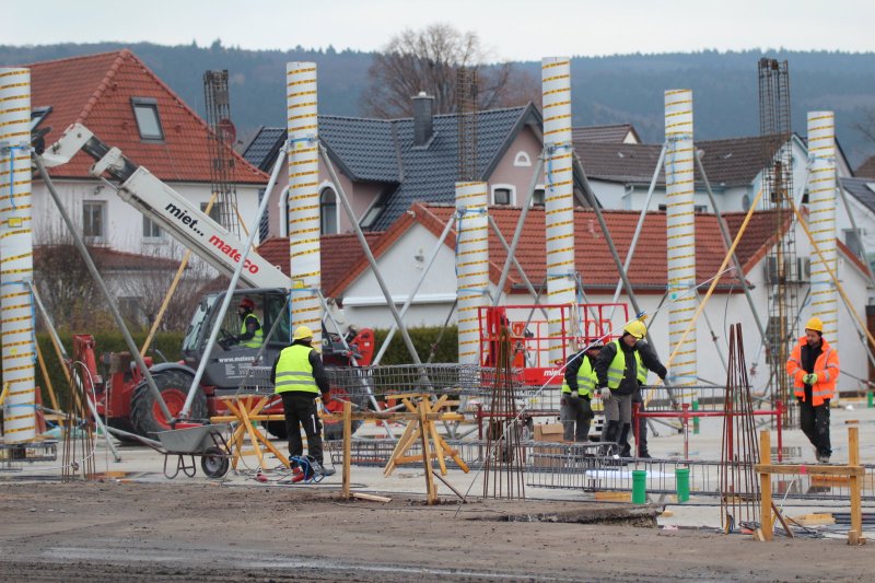Im hinteren Bereich des Grundstücks entsteht das neue Fachmarktzentrum auf mehr als 4000 Quadratmetern. Rund 50 Arbeiter sind sechs Tage in der Woche auf der Baustelle beschäftigt. Im Dunklen leuchten große Strahler das Areal aus. Lars Esser ist zuversichtlich, dass es mit der für Ende März geplanten Teileröffnung klappt, „wenn ein massiver Wintereinbruch ausbleibt“.