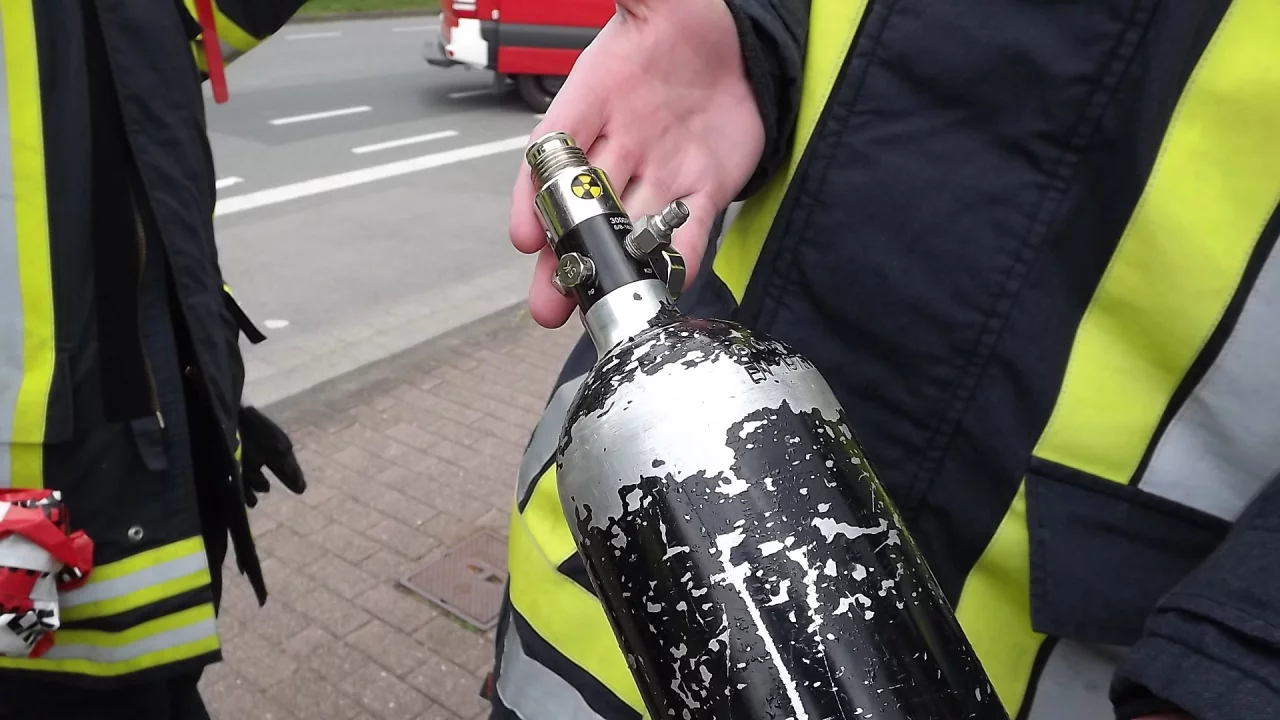 Nach kurzer Erkundung gab es Entwarnung: Bei dem Behälter handelte es sich um Druckluft-Zubehör für ein Paintball-Gewehr. Der Hersteller nutze ein Logo, das dem Gefahrensymbol für Radioaktivität zum Verwechseln ähnlich sehe, heißt es.