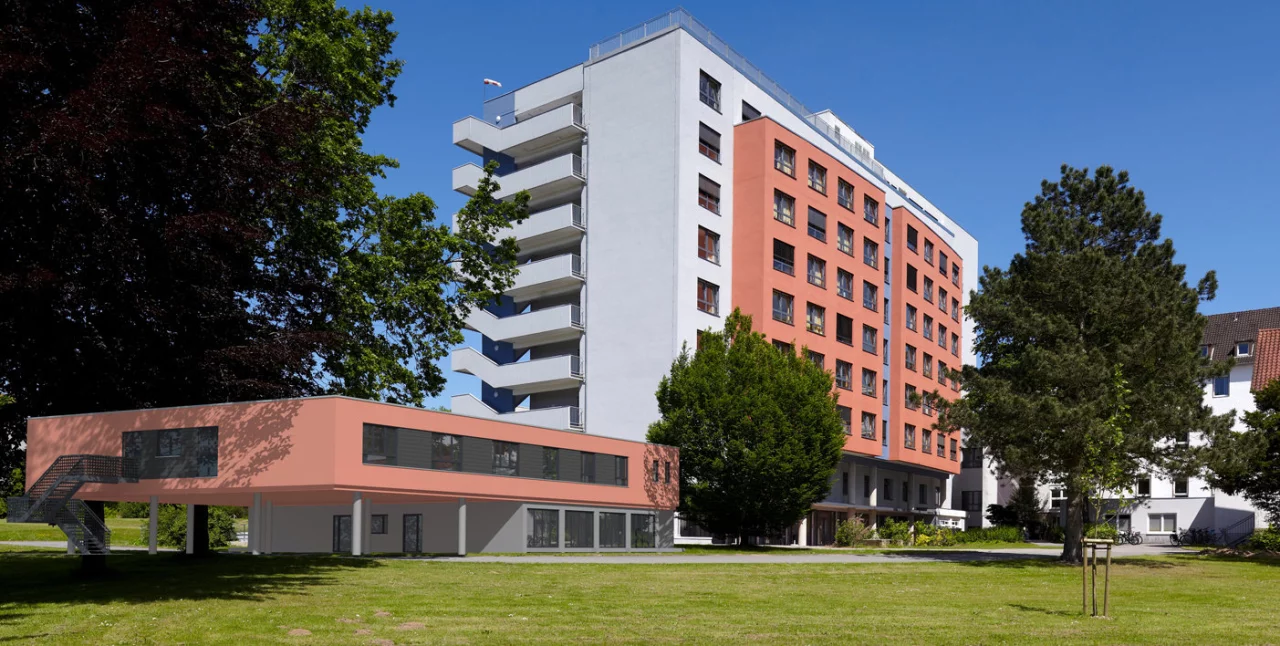 Für Geschäftsführer Middeke ist insbesondere die Platzierung ein Gewinn – der direkte Zugang zum Park sei für die Patienten sehr wichtig. Außerdem erhalten Angehörige einen eigenen Eingang.Der Altbau von Mitte der 1950er Jahre, „die alte Innere", wie Middeke sagt – sie ist nicht mehr zeitgemäß. Teils müssen Mitarbeiter hier über den Hof laufen, um ans Ziel zu gelangen. „Es wurde auch geprüft, ob eine Sanierung Sinn ergibt – doch das lohnt nicht", unterstreicht Architekt Bernd Meier das deutliche Ergebnis.