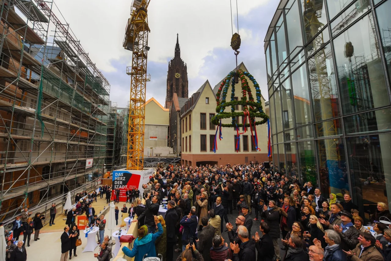 „Das war ein ergreifender Moment", berichtet Ebert. „Das gesamte Projekt ist sehr beeindruckend, hier sind die besten Zimmerer Deutschlands am Werk." Für 186 Millionen Euro wird die historische Altstadt Frankfurts rekonstruiert.