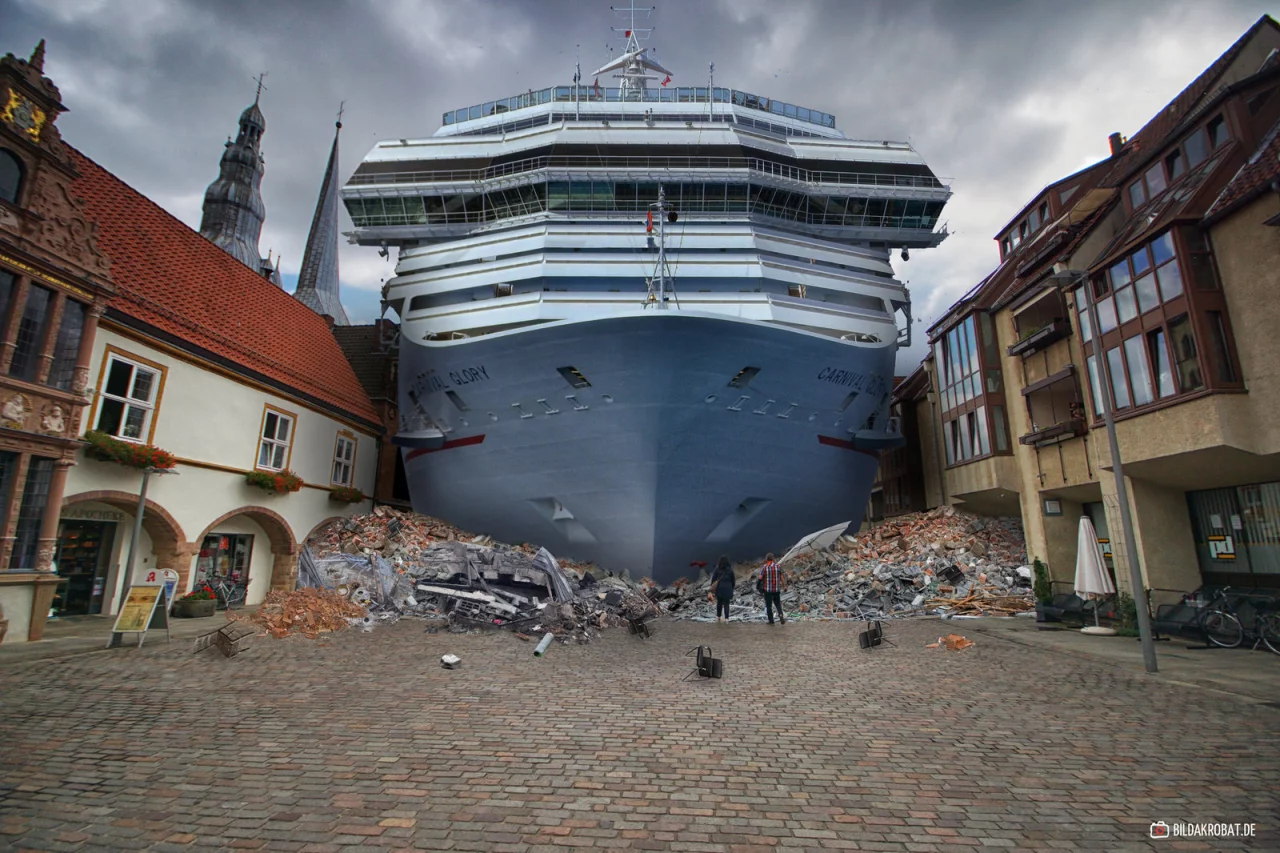 Inspirieren ließ er sich vom Endzeitfilm „I am Legend", der im verwaisten New York spielt. „Da habe ich mir überlegt, wie Lemgo wohl so verwahrlost aussehen würde", erinnert sich Kunisch. So entstand seine erste Montage: der Lemgoer Marktplatz mit halb zerfallenen Gebäuden und von Grünzeug überwuchert. „Das hat so viel Spaß gemacht, dass ich einfach weiter gemacht habe", sagt er. Und da die Bega jetzt so schön breit sei, könne doch auch mal ein richtig großes Schiff in Lemgo Halt machen. Mehr als 25.000 Menschen hat diese Fotomontage bislang erreicht – allein auf Facebook wurde sie knapp 130 Mal geteilt, mehr als 2000 Menschen folgen Kunisch unter seinem Namen „bildakrobat" auf Instagram. „Denn wie ein Akrobat seine Kunststücke vorführt, so setze ich meine Ideen in Bildern um."