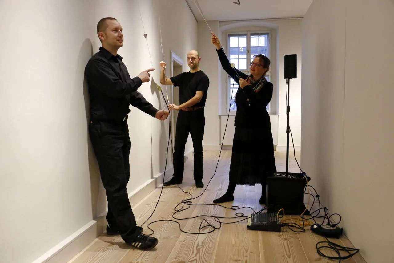 Lemgo-Brake. Die Besucher der „Klang-Performance Schwellenbereiche" werden ihre Umgebung ab sofort nicht nur mit anderen Augen wahrnehmen, sondern vor allem mit anderen Ohren. Das Künstlertrio „Geplante Obsoleszenz" hat die Räume der Städtischen Galerie Eichenmüllerhaus am Sonntag zum Klingen, Knarren, Dröhnen und Vibrieren gebracht.