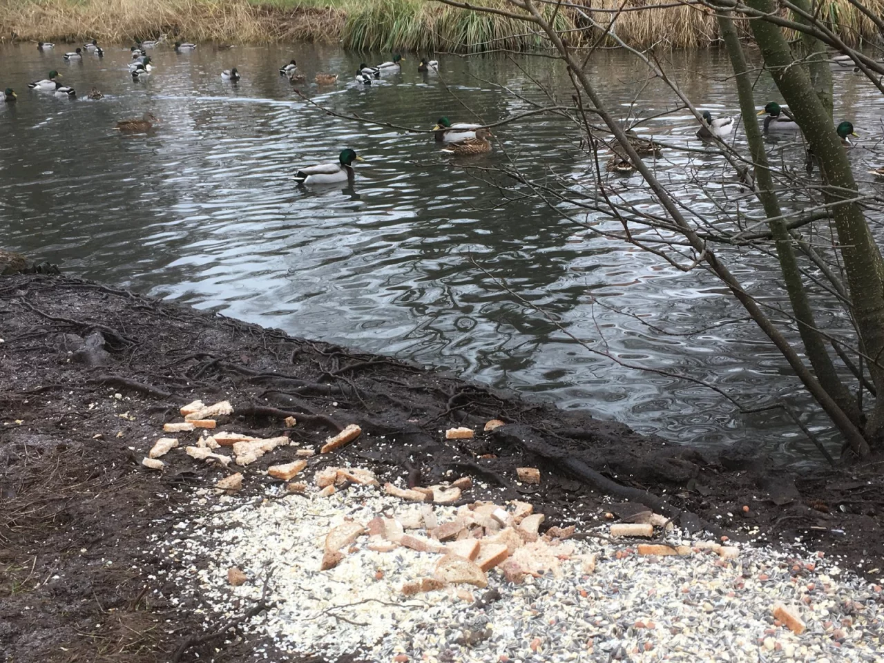 Der Beobachter sieht am Teich Folgendes: Nähert sich jemand mit einer raschelnden Tüte, kommt Bewegung in die sonst eher trägen Enten - in der Hoffnung, ein paar Krumen abzugreifen. Das Problem: Nach ein paar Bissen stellen die Vögel das Fressen ein, und die Brotberge bleiben am Ufer liegen. Häufig lässt sich in der Mittagszeit auch beobachten, dass an der Oberfläche viele Brötchen schwimmen, an denen die längst satten Enten kein Interesse mehr haben.