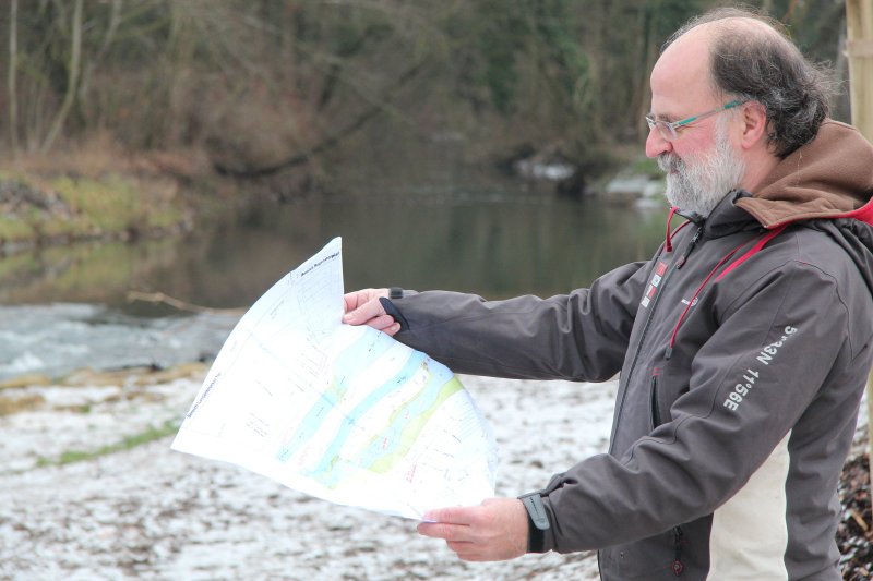 Immo Henneberg, Leiter der Lemgoer Abteilung Kanalbetrieb und Gewässer, weiß, wie sich das Gesicht der Bega bis zur Pagenhelle verändern soll. Die Stadt will da anknüpfen, wo sie am Langenbrücker Tor aufgehört hat. (© Till Brand)