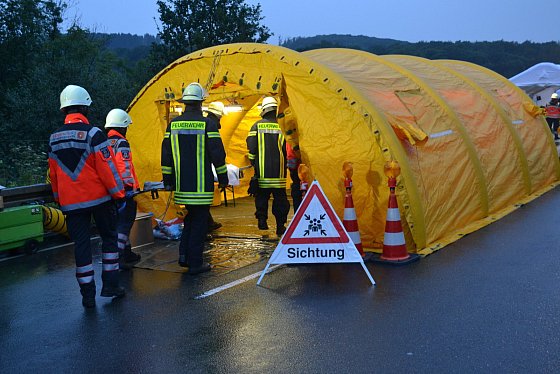 Die Rettungskräfte der Lemgoer Feuerwehr, des Bevölkerungsschutzes Lippe, der Feuerwehr Bad Salzuflen, der technischen Einsatzgruppen der THW-Ortsverbände Lemgo und Detmold, der Feuerwehr Detmold, der Hilfsdienste der Johanniter, Malteser und des Deutschen Roten Kreuzes rückten aus - vor Ort auf der B66n erwies sich der Einsatz glücklicherweise nur als großangelegte Übung, die den beteiligten Rettungskräften vorab nicht bekannt war.