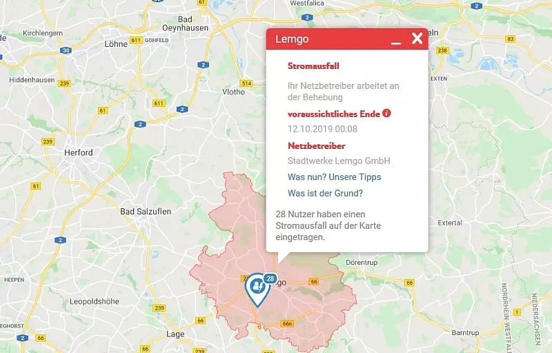 Wie Stadtwerke-Bereichsleiter Ralf Settertobulte berichtete, lag die Ursache für den Stromausfall in einem Defekt an einem 10.000 Volt-Kabel in der Nähe des Detmolder Weges. Das Kabel wurde für weitere Reparaturen abgeschaltet.