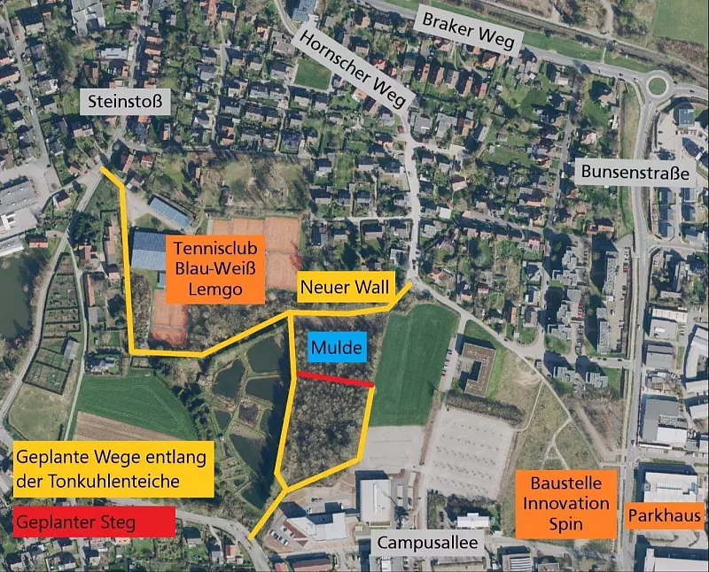 Lemgo. Der Steg durch das so genannte Campus-Wäldchen wackelt gewaltig. Dem Widerspruch des Umweltverbandes BUND sowie der Grünen-Ratsfraktion werden sich Montag im Hauptausschuss auch die SPD und Bürger für Lemgo (BfL) anschließen. Damit stünde die hauchdünne Mehrheit, die umstrittene Ertüchtigung des Pfades durch das Feuchtbiotop an den alten Tonkuhlenteichen abzulehnen.