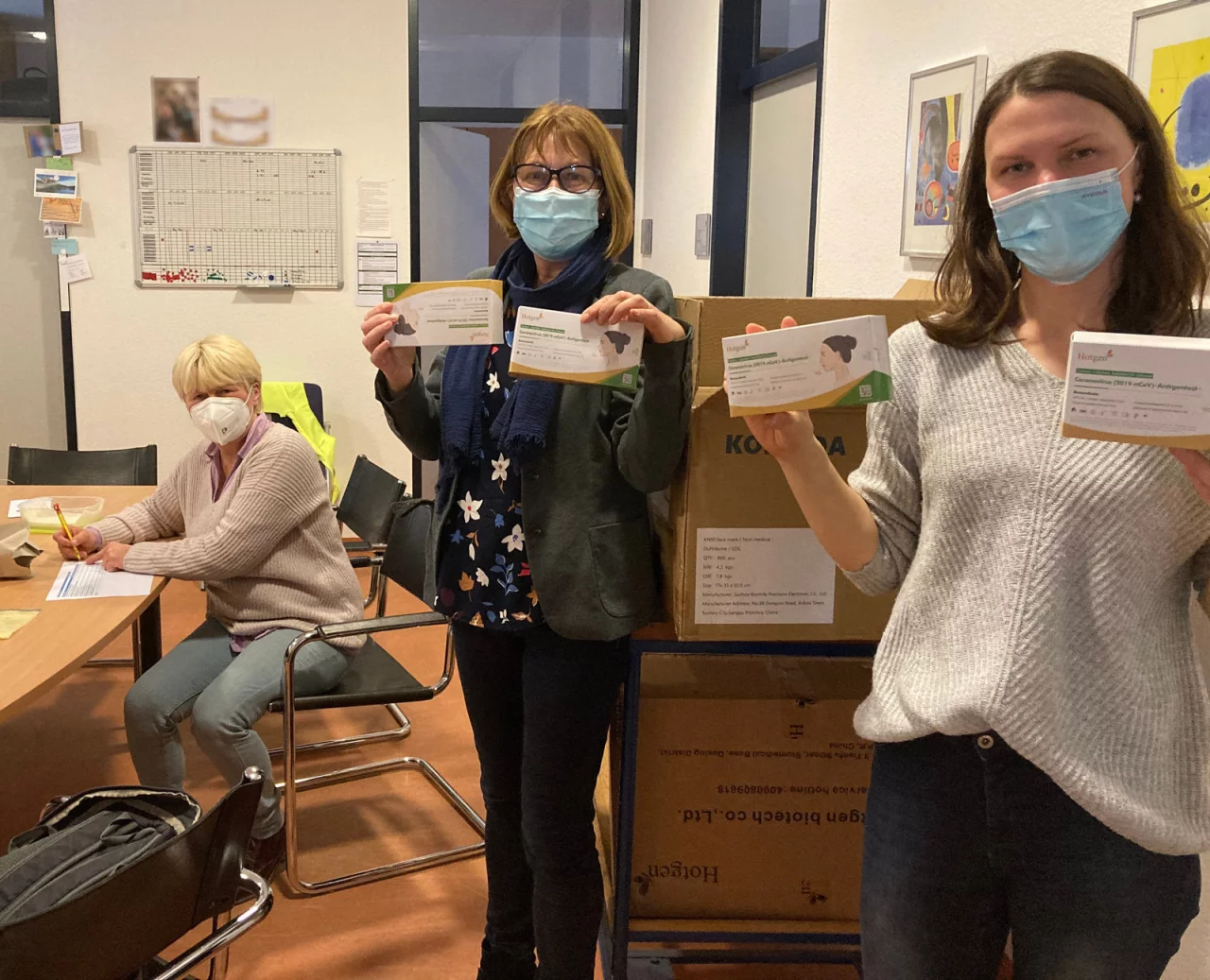 Das erweiterte Corona-Testangebot gibt es seit dem 12. April. Die erste Lieferung an Selbsttests hatten Christina Groll, Elena Dieckelmann und Sigrun Düe vom Lemgoer Jugendamt drei Tage vorher entgegengenommen. Anhand von Verteilerlisten stellten sie für jede der städtischen Kindertageseinrichtungen ein Paket mit der passenden Anzahl an Tests für eine Woche zusammen. Das Interesse der Kitas war groß, innerhalb weniger Stunden waren die ersten Pakete bereits abgeholt.