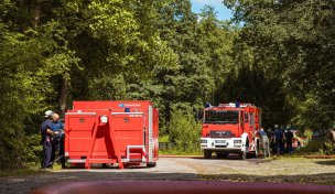 Im Stadtwald hat die Freiwillige Feuerwehr den Einsatz des Systems geübt. Aus einem der Försterteiche hat sie Wasser in einen höher gelegenen Löschteich gepumpt. Wehrleiter Klaus Wegener ist mit der Übung zufrieden. Das Wasserfördersystem könne im Ernstfall entscheidende Zeit einsparen. "Und in Anbetracht häufigerer Extremwetterlagen ist auch die Möglichkeit zum Einsatz bei Überflutungen eine wichtige Funktion", wird Wagner weiter zitiert.