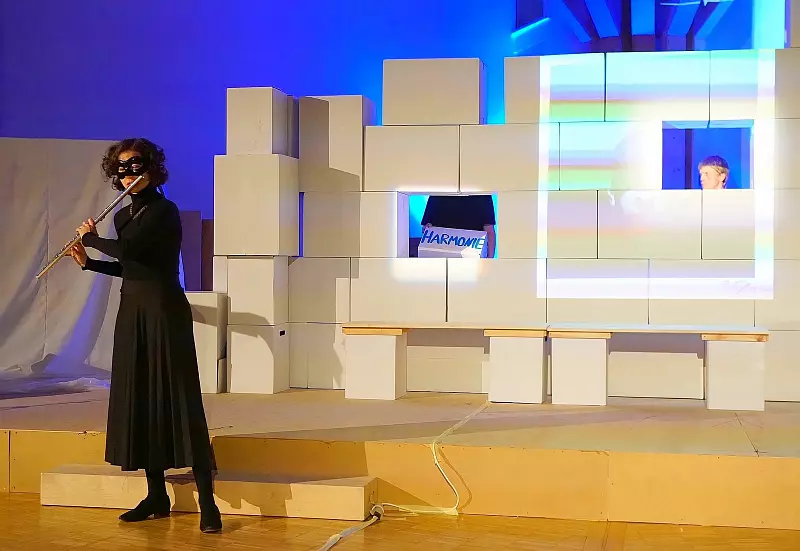 Das Bühnenbild, eine Wand aus vielen weißen Kartons, wird laut der Mitteilung am Anfang gemeinsam aufgebaut und am Ende „abgebrochen“, von den Darstellern wild von der Bühne geworfen. Einige Besucher waren zunächst verdutzt - doch am Ende ernteten die Darsteller begeisterten Applaus.