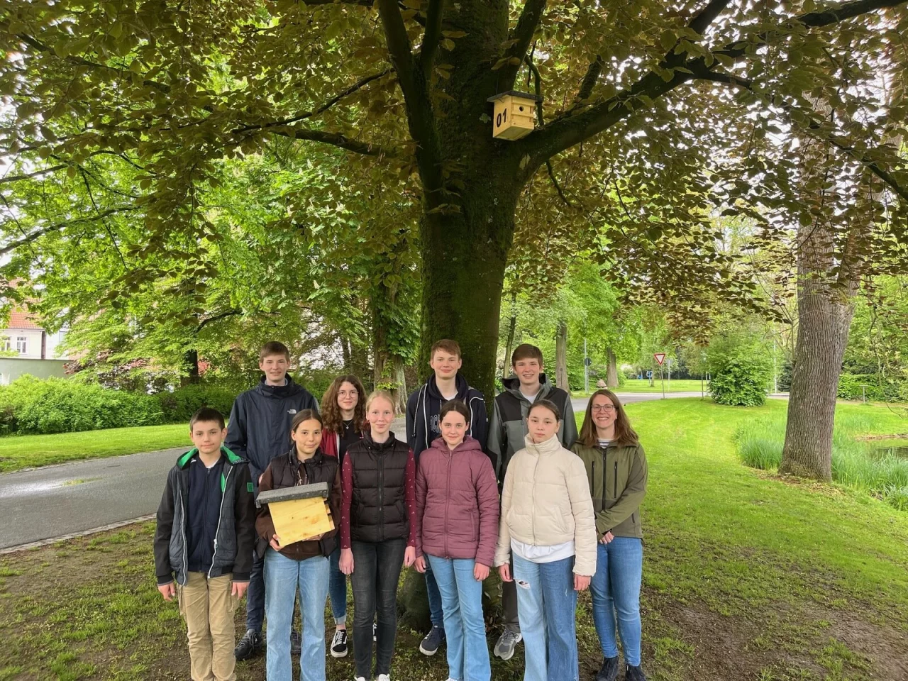 Lemgo. Vier Tage lang haben sich einige Schülerinnen und Schüler des Engelbert-Kaempfer-Gymnasiums (EKG) in Lemgo mit dem Thema Nachhaltigkeit beschäftigt. In dem Projekt von Lehrerin Katharina Vogedes und Referendarin Lara Strohdiek bauten sie laut Pressemitteilung für den Schutz der Vögel und der Natur 21 Nistkästen, welche später auf dem Lemgoer Wall angebracht wurden. Für den Bau und die sachgerechte Anbringung stand die Gruppe in regem Austausch mit dem Bund für Umwelt- und Naturschutz Deutschland (BUND). Auch der Kartierungsgedanke sei aus diesem Dialog gewachsen.