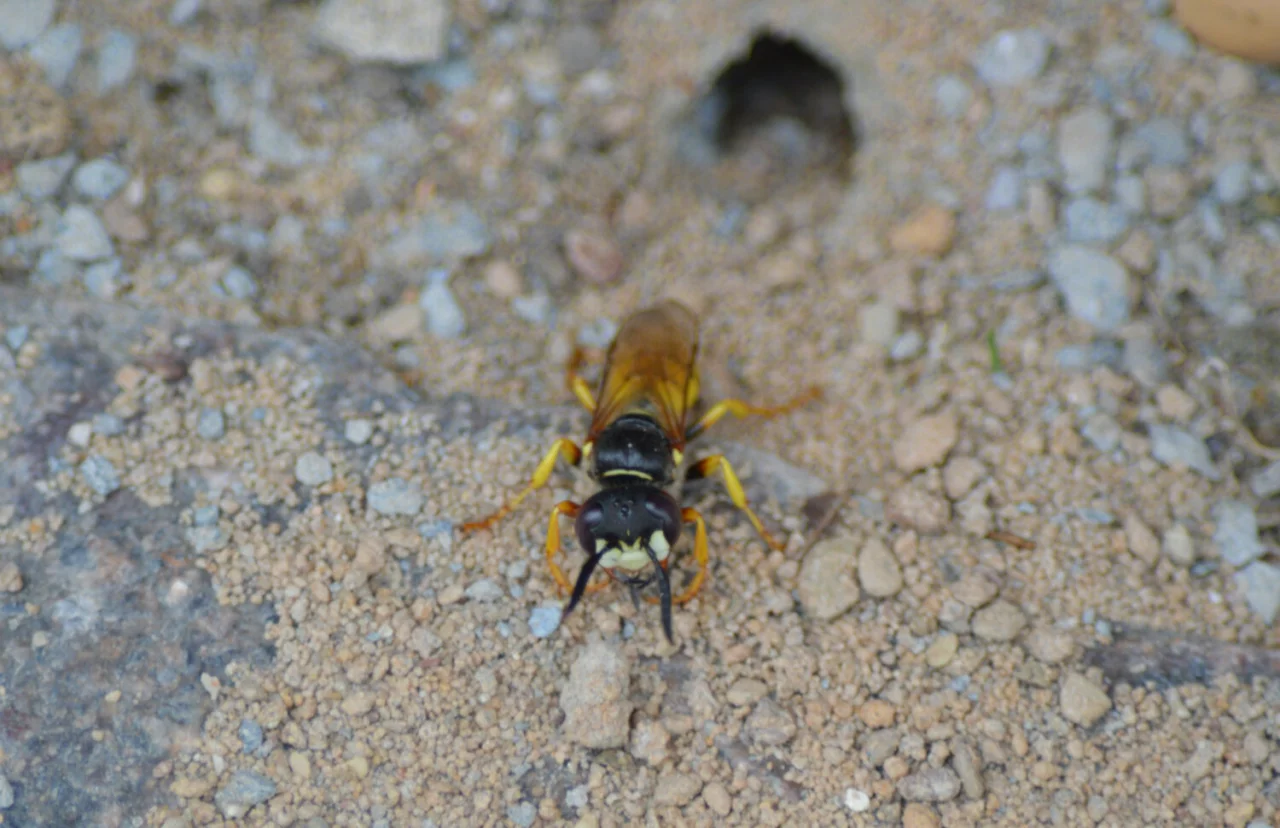 Die Nester der Bienenwölfe reichen nach Angaben von Hennebrüder bis in eine Tiefe von 150 Zentimeter. Der Experte erläutert: "Am Ende werden in abzweigenden Gängen drei bis acht Brutzellen angelegt. Dort werden erbeutete Bienen hinein getragen, die die Bienenwölfe zuvor durch einen Stich gelähmt haben. In jede Brutzelle werden mehrere gelähmte - noch lebende - Bienen gelegt und auf die letzte eingetragene Biene wird dann ein Ei abgelegt. Daraus schlüpft schon nach wenigen Tagen eine Larve, die sich von den gelähmten Bienen ernährt, bis sie sich nach zwei Wochen in einen Kokon spinnt."