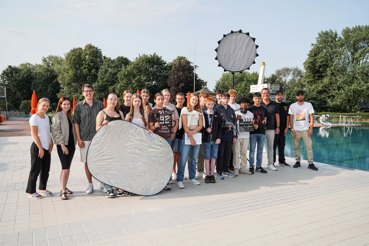 Die Schülergruppe hatte die Aufgabe, einen Film über Wasser zu drehen. Anhand der Fragestellungen "Für was wird Wasser genutzt" und "Wie kann man Wasser sparen" ist der Film laut Mitteilung an vielen verschiedenen Drehorten produziert worden. So wurde etwa im Freizeitbad Eau-Le, an den Braker Wiesen und am Biesterberg gedreht.