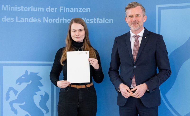 Als Zeichen der Wertschätzung hat Minister Dr. Marcus Optendrenk die Besten der Steuer-Profis im Düsseldorfer Ministerium der Finanzen begrüßt und ihnen zu ihrem herausragenden Abschluss gratuliert: „Ihre Arbeit ist wichtig für unser Land. Die Mitarbeiterinnen und Mitarbeiter dieser Finanzverwaltungs-Familie sind unser größter Schatz. Sie haben als unsere diesjährigen Absolventinnen und Absolventen wirklich hervorragende Leistungen erbracht. Das ist großartig.“ Staatssekretär Dr. Dirk Günnewig nahm die Glückwunschübergabe vor und unterstrich bei dem feierlichen Festakt: „Sie haben in einem sehr anspruchsvollen Studium beziehungsweise in einer sehr anspruchsvollen Ausbildung Enormes geleistet. Die Finanzverwaltung für Nordrhein-Westfalen freut sich über die Verstärkung im Team und eine gute Zusammenarbeit im Sinne der Bürgerinnen und Bürger sowie der Unternehmen.“