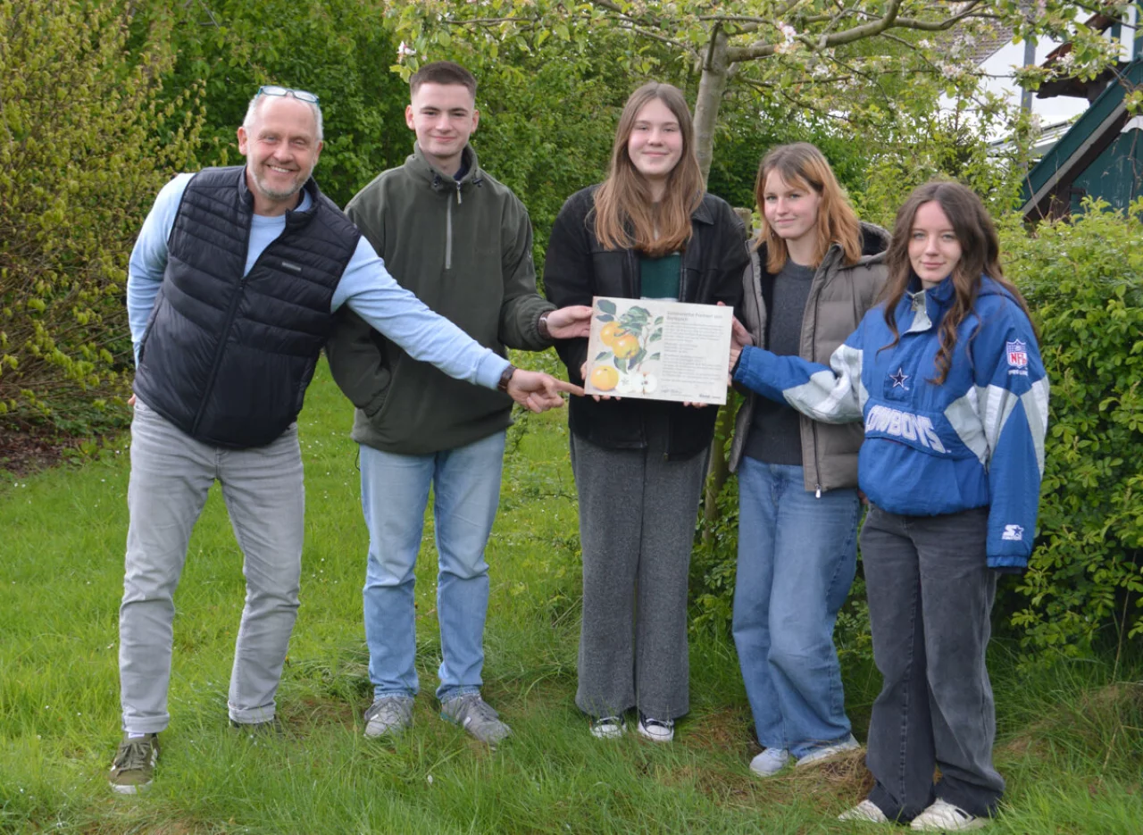 Geplant ist nach Angaben des BUND die Pflanzung einer Goldrenette Freiherr von Berlepsch, eine alte Sorte, die im Jahr 1880 von Dietrich Uhlhorn jun. gezüchtet worden ist. „Er gehörte zu den Obstkundlern, die Ende des 19. Jahrhunderts mit einer bewussten Kreuzung von Apfelsorten begonnen haben. Aufgrund langjähriger Erfahrung nahm er für die Züchtung eine robuste Sorte als Vatersorte. Die Goldrenette wurde europaweit verbreitet, zeichnet sich durch einen sehr hohen Vitamin C-Gehalt aus und hat einen hohen Gehalt an gesundheitsfördernden Polyphenolen, was sie für Apfelallergiker meist verträglich macht. Hinzu kommt eine natürliche Lagerfähigkeit bis in den Mai des Folgejahres. Somit eine der besten Apfelsorten schlechthin“, schildert der BUND.