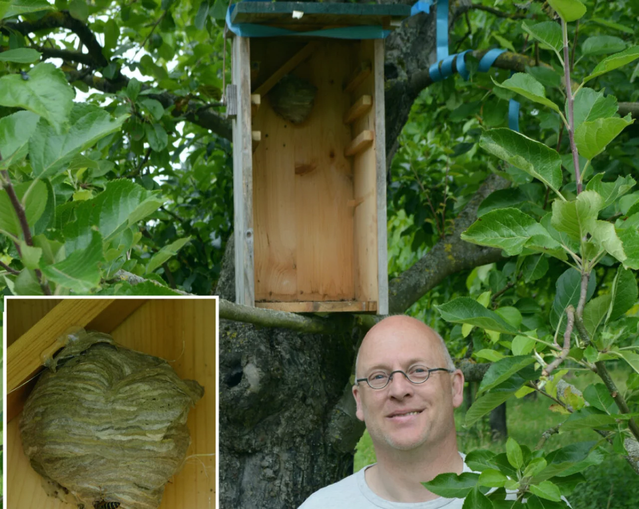 Lemgo. Jürgen Badtke von der Lemgoer Ortsgruppe im Bund für Umwelt und Naturschutz Deutschland (BUND) hat ein Nest der Mittleren Wespe umgesiedelt. Die Insekten sind laut Pressemitteilung des BUND Lemgo von Detmold auf die Streuobstwiese Am Lindenhaus umgezogen.