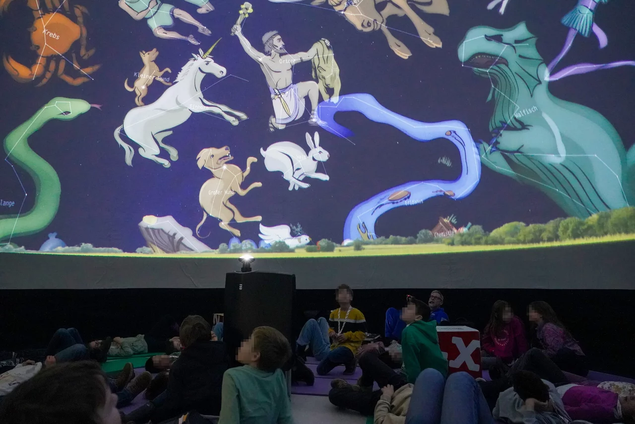 „In der acht Meter breiten und fünf Meter hohen Zeltkonstruktion herrschte reges Interesse. Astrophysiker Tilo Hohenschläger, stilecht im NASA-Overall gekleidet, beantwortete die zahlreichen Fragen der wissbegierigen Nachwuchs-Raumfahrenden“, schreibt Lippe Bildung eG in einer Pressemitteilung. Die Kinder wollten beispielsweise wissen, was Exoplaneten sind, ob unserem Sonnensystem ein schwarzes Loch droht oder wie Astronautenpipi auf der ISS recycelt wird. „Hohenschläger präsentierte altersgerechte Fulldome-Filme und erklärte anschaulich die Geheimnisse unseres Sonnensystems.“