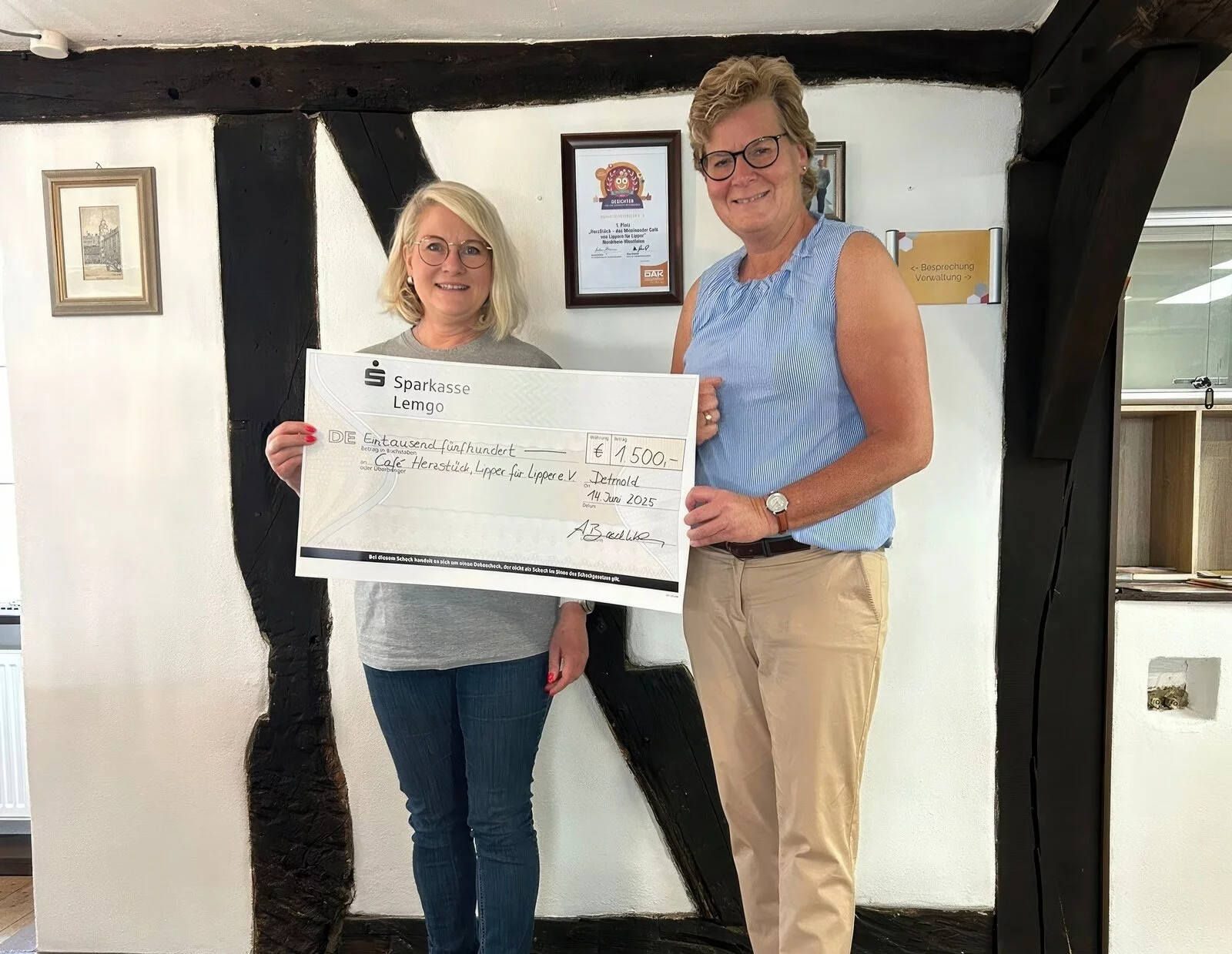 Jeweils 1500 Euro gingen an das Projekt „Café Herzstück – Lipper für Lipper“ sowie an den „Sozialen Mittagstisch Lemgo“. Die vom Unternehmen aufgerundeten Beträge stammen aus Spenden der Gäste der Jubiläumsfeier.