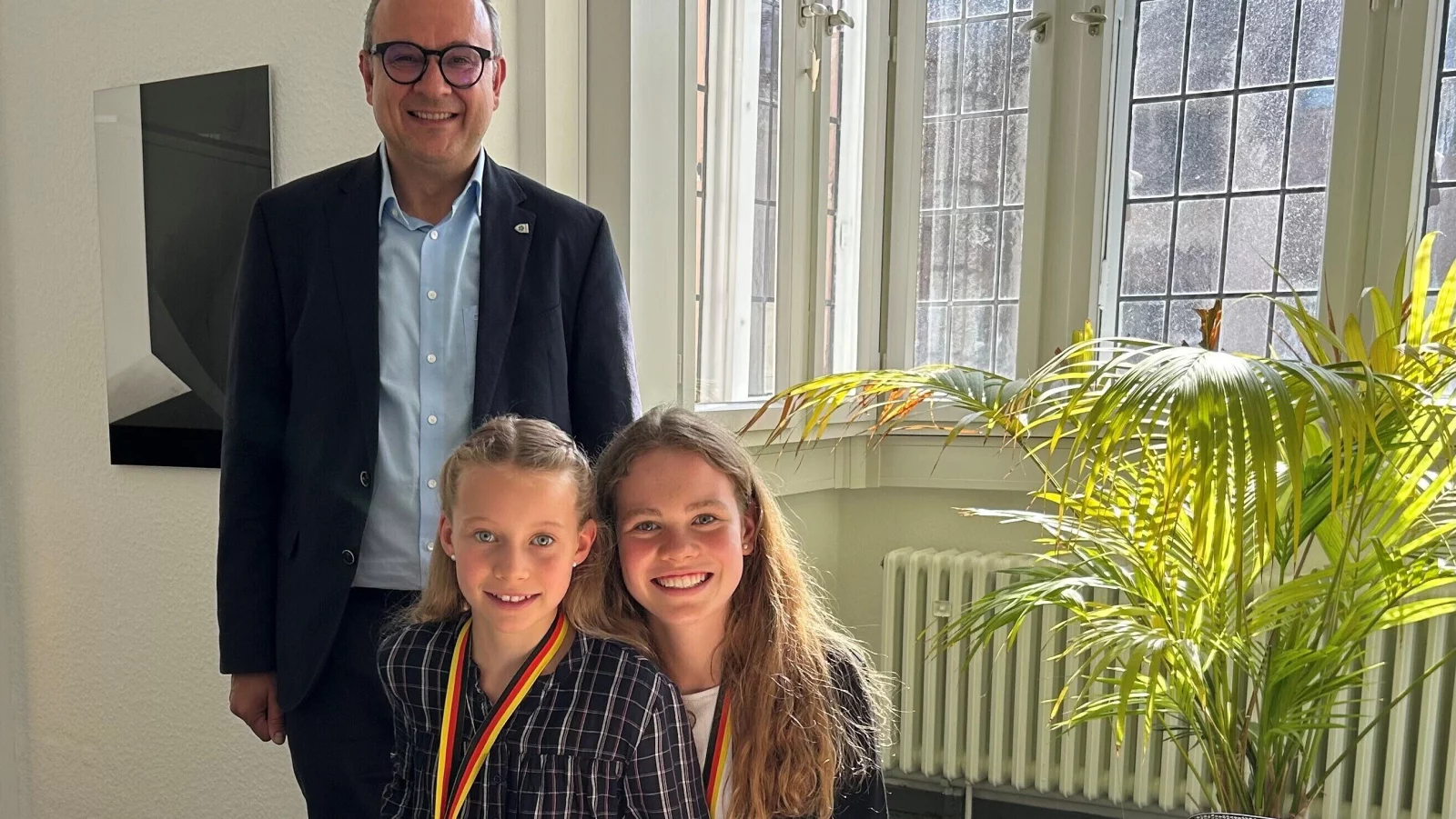 Zudem sicherte sich Marlene im Einer-Kunstradsport den Titel alsDeutsche Meisterin. Im Beisein von ihren Eltern und dem jüngeren Bruder Mattis berichteten Greta und Marlene dem Bürgermeister von ihrem Weg zur Titelverteidigung. Neben unzähligen Trainingsstunden gehörte dazu auch ein kühler Kopf am Wettkampftag. „Ihr könnt sehr stolz auf eureLeistung sein, die mit dem Eintrag in das Goldene Buch nun auch ein StückStadtgeschichte ist“, beglückwünschte Markus Baier die beiden Sportlerinnen laut Pressemitteilung.
