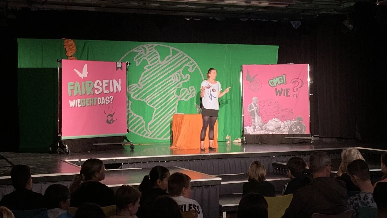 Ein wiederkehrendes Thema war Kinderarbeit – in der Textilindustrie und bei der Kakaoernte. Das Publikum wurde aktiv einbezogen, etwa beim „Schokoquiz“, das die Bedingungen der Schokoladenproduktion verdeutlichte.Die zentrale Frage „Wie geht fair sein?“ beantwortete das Stück nicht abschließend, regte aber zum Nachdenken an. Viele Schülerinnen und Schüler kündigten an, künftig stärker auf das Fair-Trade-Siegel zu achten und bewusster mit Müll umzugehen.