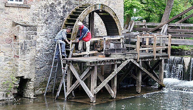 "Es wurde wirklich dringendstens Zeit für die Sanierung", sagt Vereins-Vorsitzender Karl-Heinz Richter. Mit den Jahrzehnten haben die Kräfte der Natur dem Holz arg zugesetzt. Normalerweise wird die Lebensdauer eines Mühlrades auf 30 Jahre geschätzt – wird es überdacht und so vor allem gegen Frost und Eis geschützt, können es auch ein paar Jahre mehr werden. "Aber eine Überdachung ist ja hier nicht sinnvoll", betont Richter die Funktion der Mühle als Anschauungsobjekt und Sehenswürdigkeit.