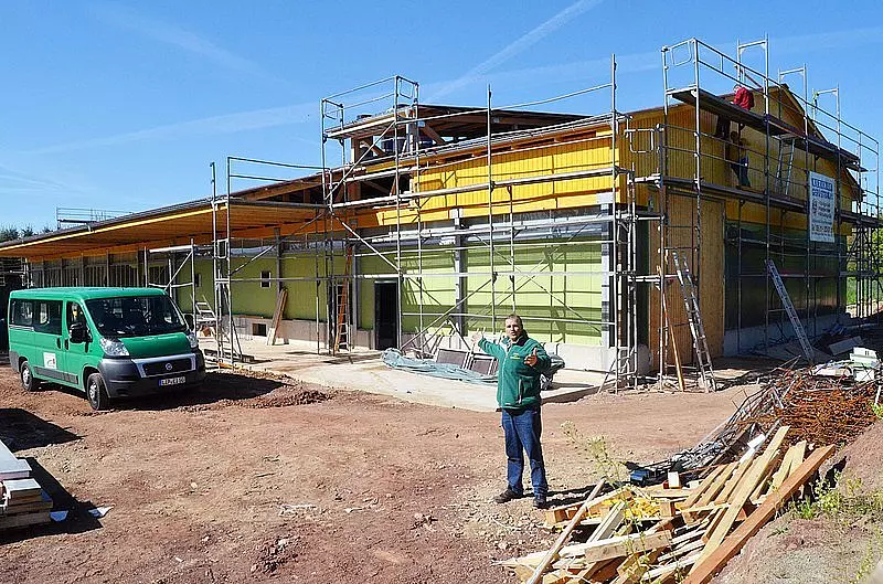 Doch er hatte schon eine Lösung im Kopf und hat sie nun verwirklicht, nach etlichen Behördengängen: Durch große Löcher im Boden des ersten Stocks können die Besucher im neuen Stall demnächst hinunterblicken und den Hühnern beim Eierlegen zugucken.