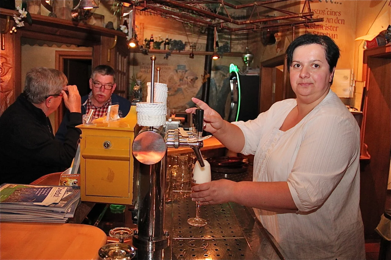 „Ab 22 Uhr wird es im Restaurantbereich langsam ruhiger“, erzählt sie, während sie die eben gespülten Gläser poliert. Von Aufbruchstimmung ist im Schankraum allerdings noch nicht viel zu spüren. Zwei Herren an der Theke diskutieren die Tagesnachrichten, und am runden Tisch in der Ecke sind die Männer vom Motorrad-Stammtisch noch in ihre Benzingespräche vertieft. Wer hier allerdings Kutten tragende Rocker vermutet, der irrt. „Das sind alles gestandene Familienväter, die regelmäßig gemeinsam Motorrad fahren und sich hier auf ein Bierchen treffen“, unterstreicht Sabljic.