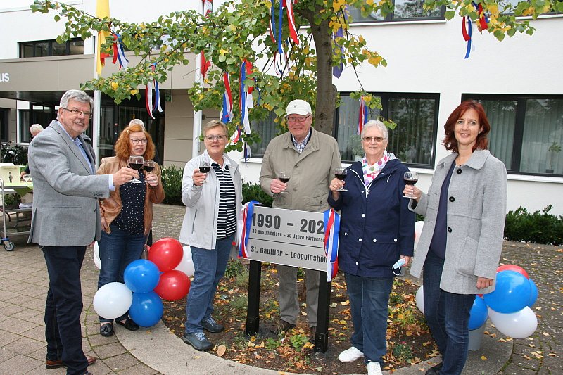 Für Saint Gaultier hatte Bürgermeister Guy Ovide (gestorben 2010) die Jumelage besiegelt, sein damaliger deutscher Amtskollege hieß Rudi Strunk. Der Leopoldshöher Alt-Bürgermeister nahm auch an der jetzigen Zeremonie teil. Alle Anwesenden bedauerten, dass aufgrund der Corona-Pandemie keine gemeinsame Feierstunde möglich sei.
